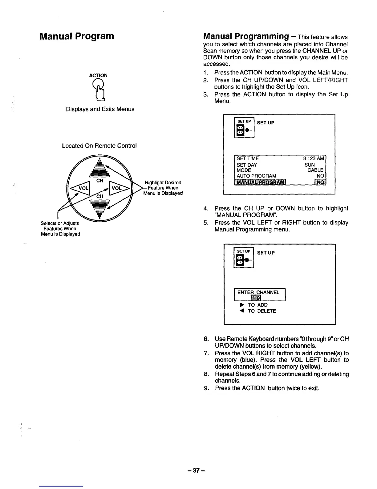2. Press the CH UP/DOWN and VOL LEFT/RIGHT