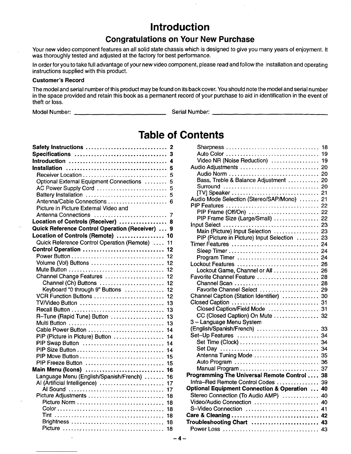 Your new video component features an all solid state chassis which is designed to give you many years of enjoyment. It