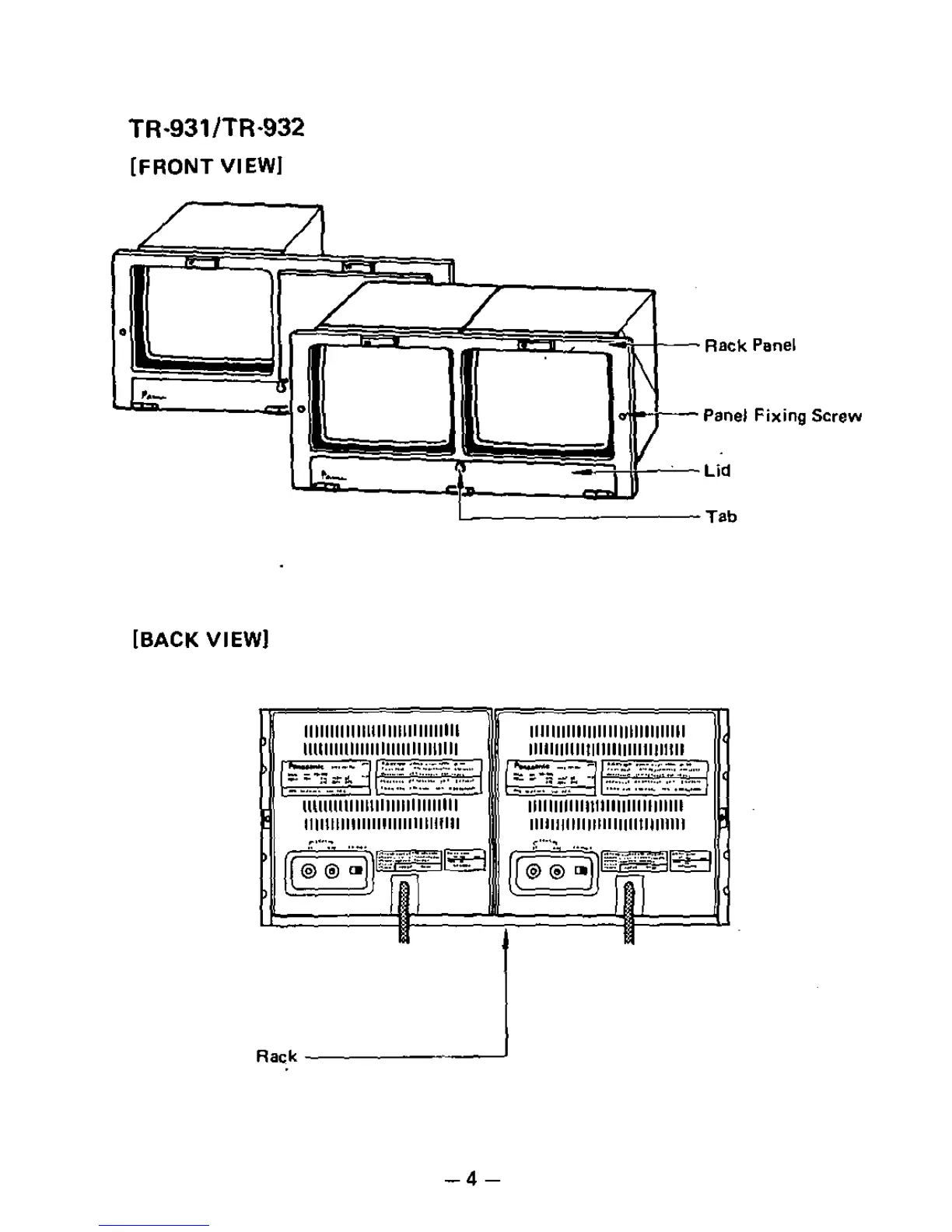 Panasonic TR-930 - TR-931;TR-932 Operating Components; TR-931;TR-932 Front View Features; TR-931;TR-932 Back View Details