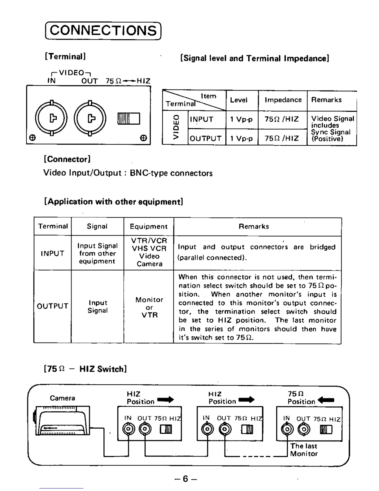 Panasonic TR-930 - CONNECTIONS; Video Input;Output Details; External Equipment Connectivity
