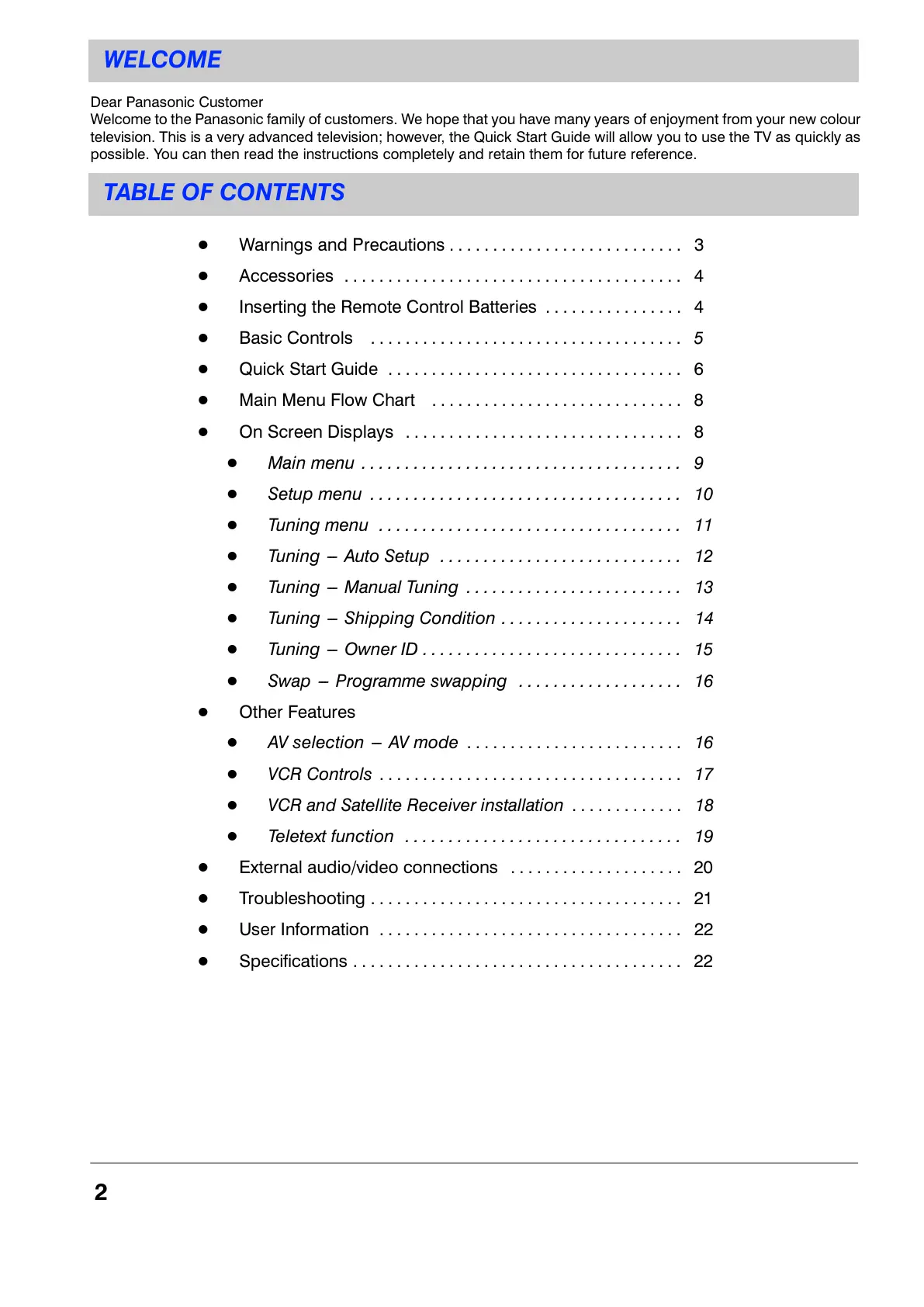 Welcome to the Panasonic family of customers. We hope that you have many years of enjoyment from your new colour