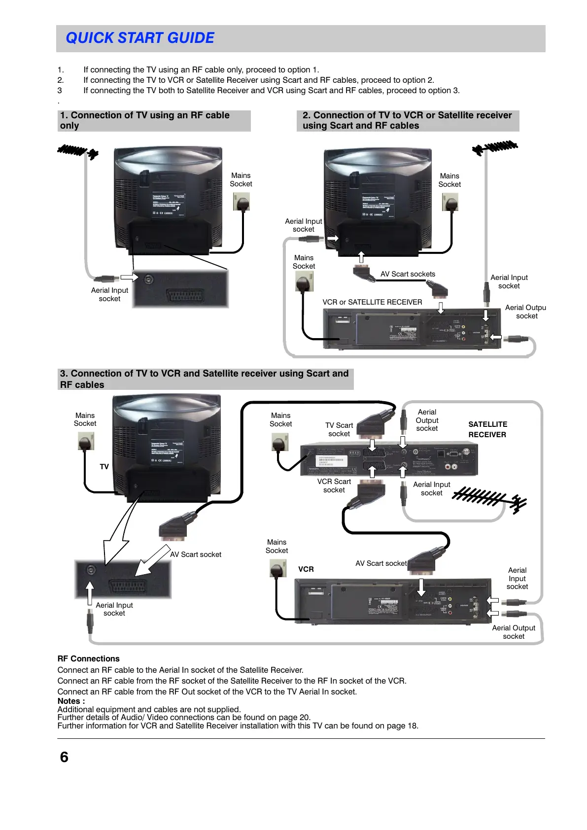 Further information for VCR and Satellite Receiver installation with this TV can be found on page 18.