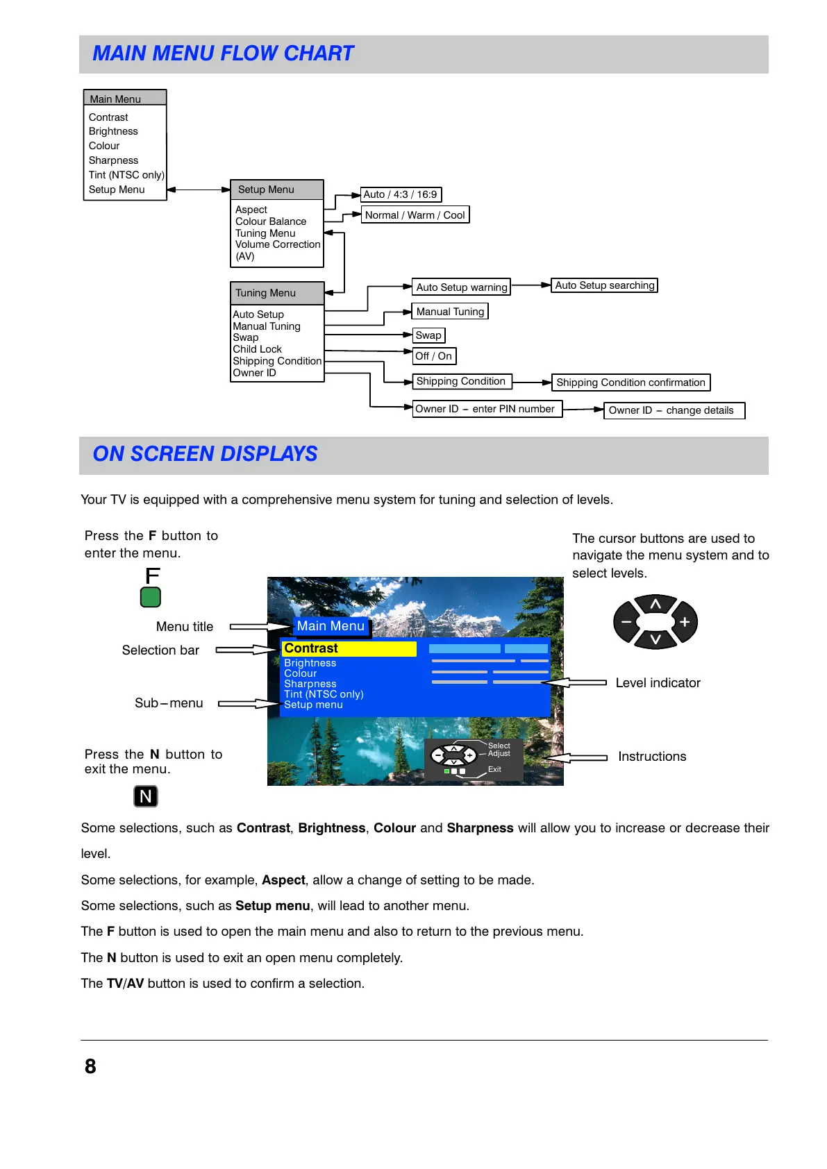 Your TV is equipped with a comprehensive menu system for tuning and selection of levels.