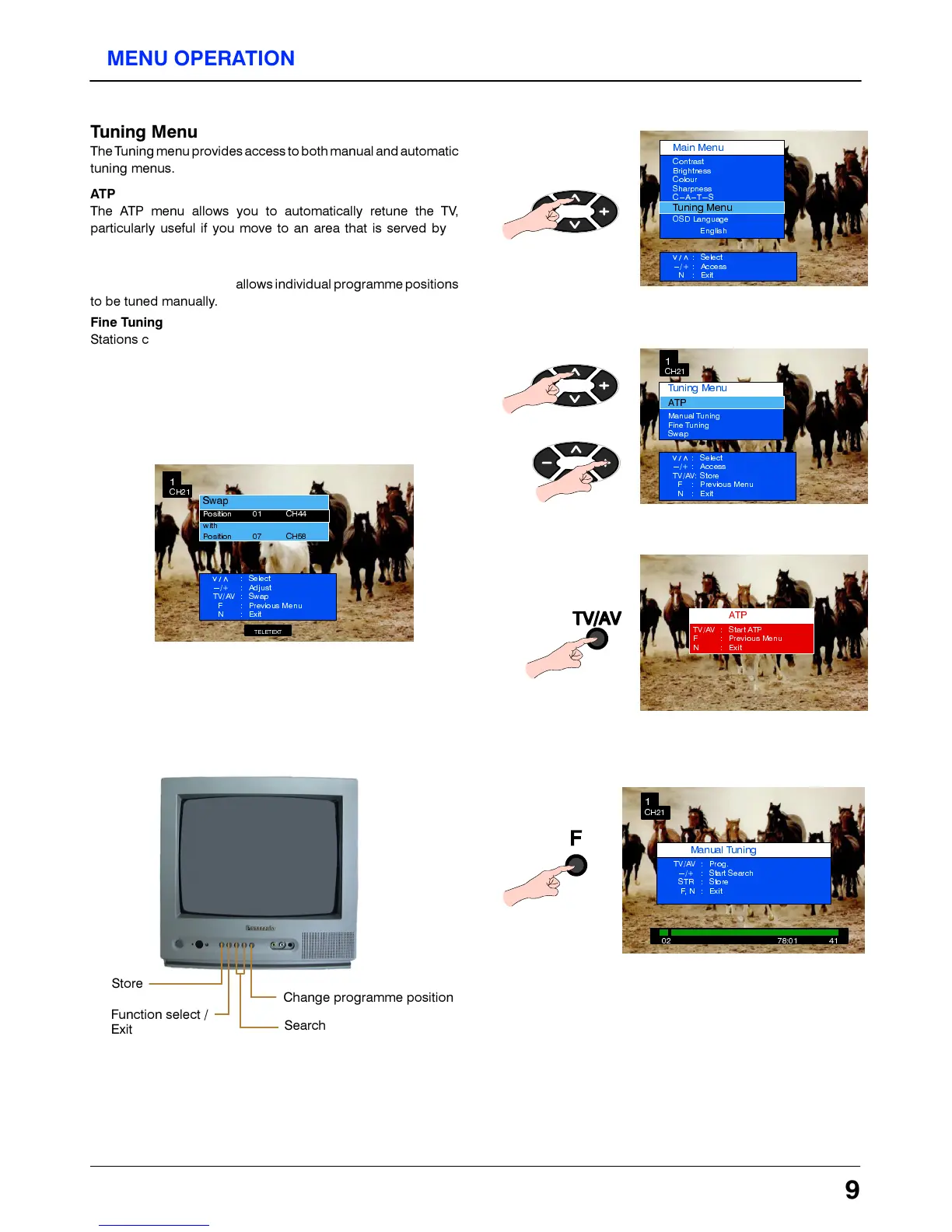 7KH 0DQXDO WXQLQJ PHQX DOORZV LQGLYLGXDO SURJUDPPH SRVLWLRQV