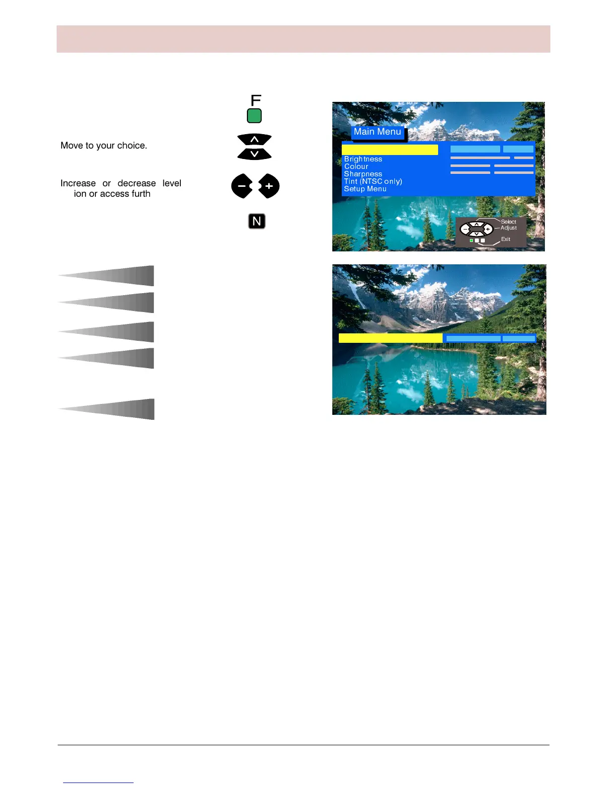 7KLV PHQX DOORZV DGMXVWPHQW RI SLFWXUH TXDOLW\ DQG JLYHV DFFHVV WR YDULRXV RWKHU IHDWXUHV