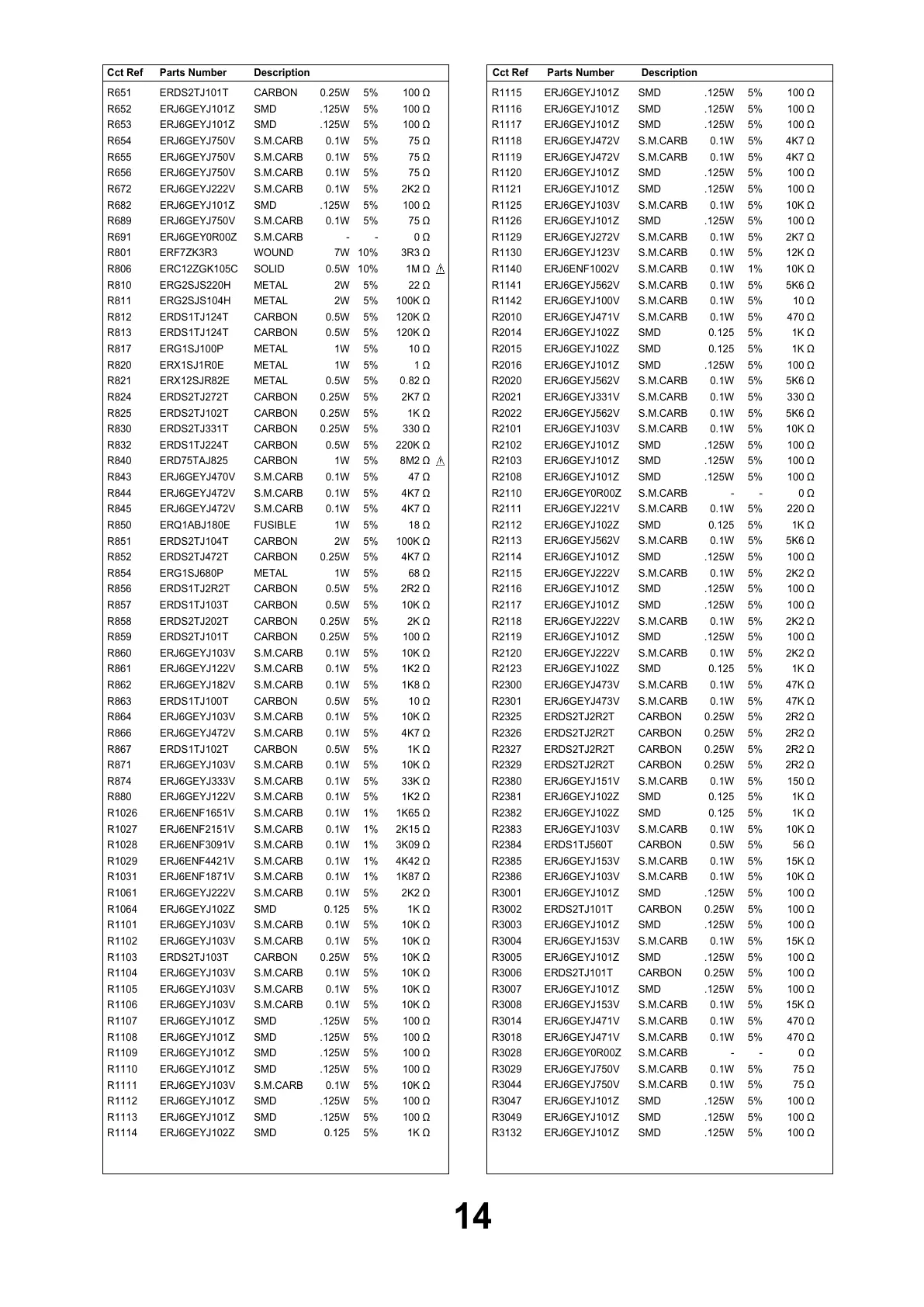 DescriptionCct Ref Parts Number DescriptionCct Ref Parts Number