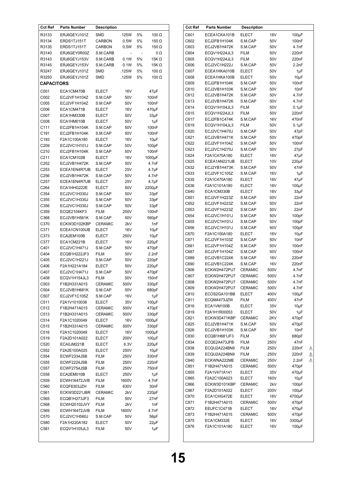 DescriptionCct Ref Parts Number DescriptionCct Ref Parts Number