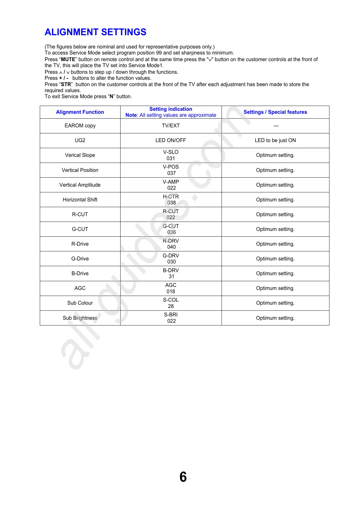 To access Service Mode select program position 99 and set sharpness to minimum.
