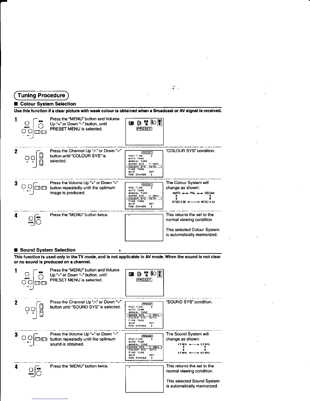 Panasonic TX-21FJ50A - Tuning Procedures; Colour System Adjustment; Sound System Adjustment
