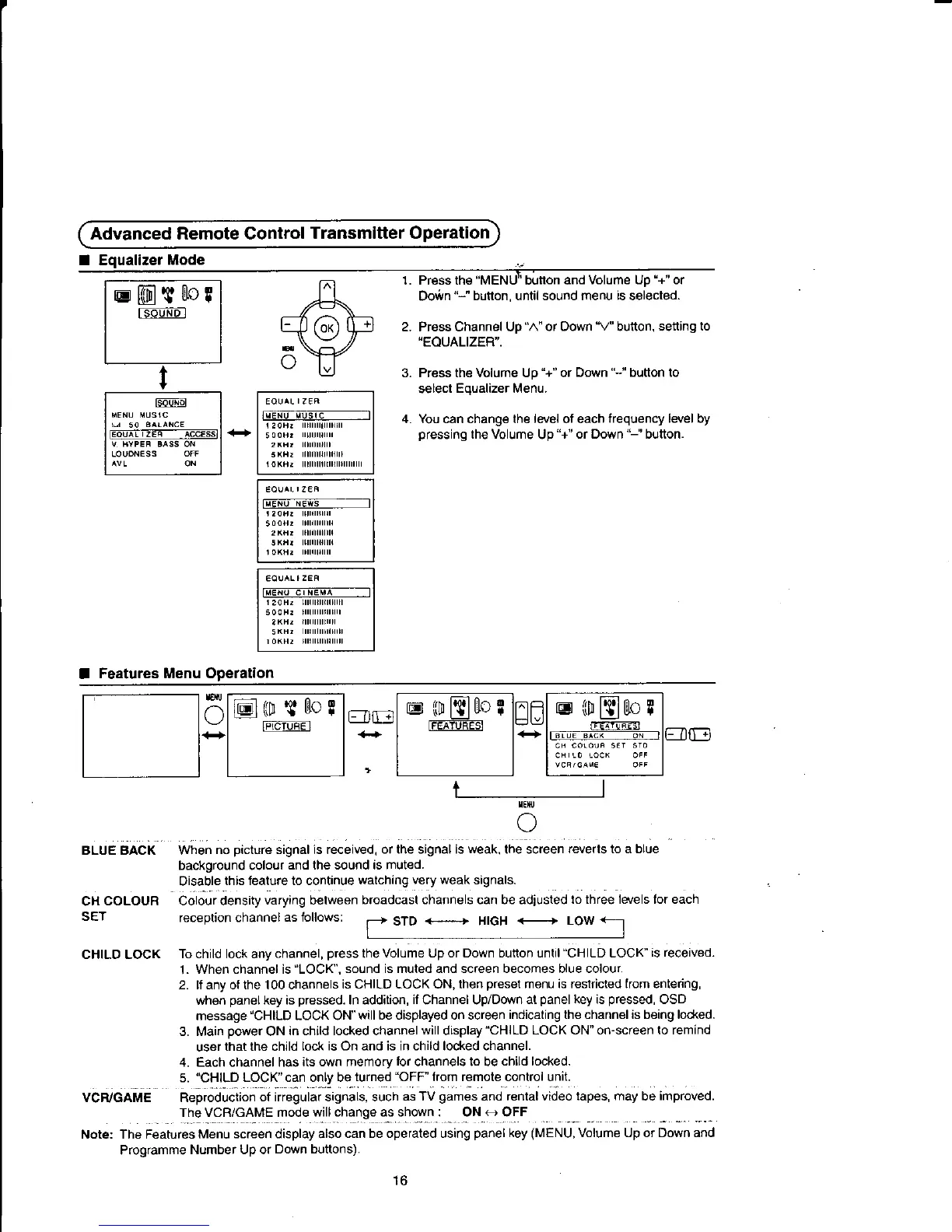 Panasonic TX-21FJ50A - Equalizer and Feature Settings