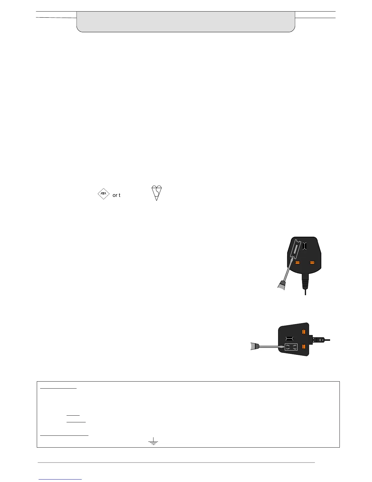 8QGHU QR FLUFXPVWDQFHV VKRXOG HLWKHU RI WKHVH ZLUHV EH FRQQHFWHG WR WKH (DUWK WHUPLQDO RI WKH WKUHH SLQ SOXJ