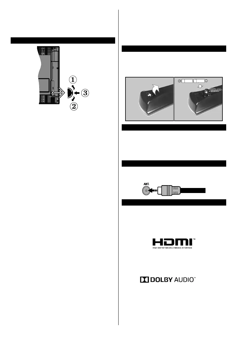 To turn the TV off: Press the middle of the button