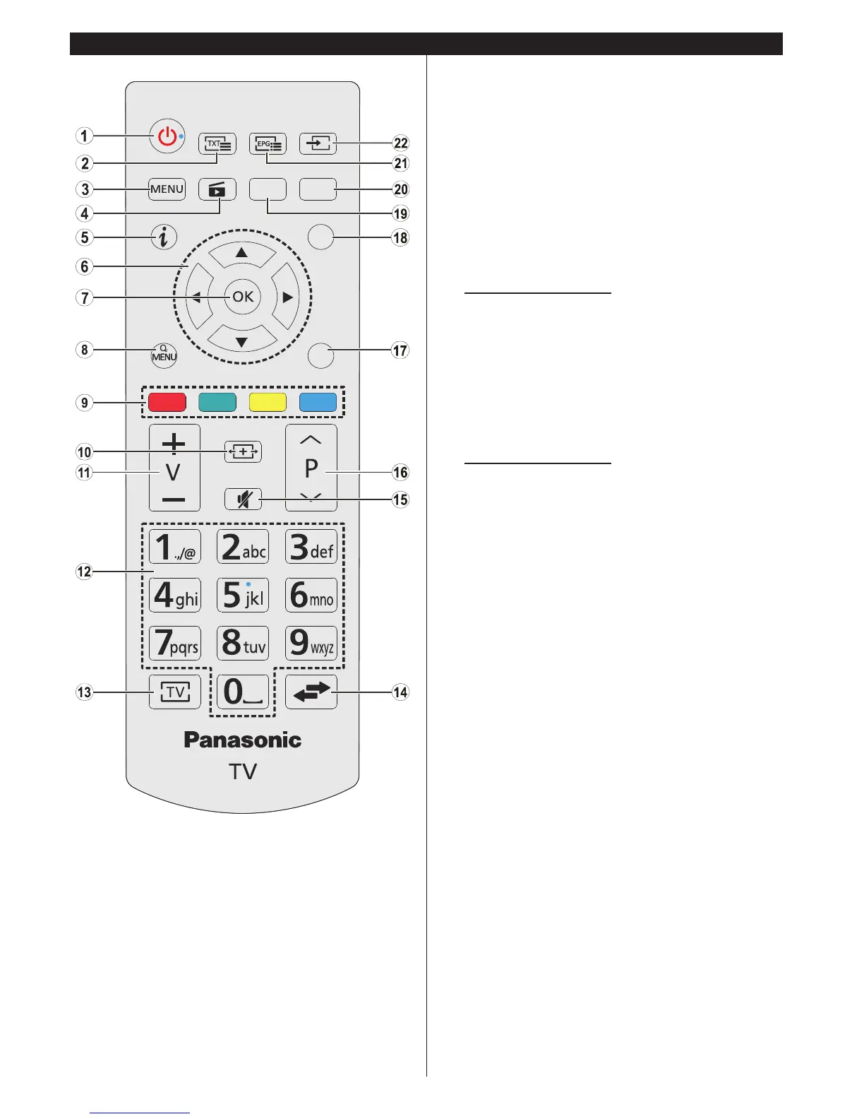 13. TV: Toont zenderlijst / Schakelt terug naar TV-bron