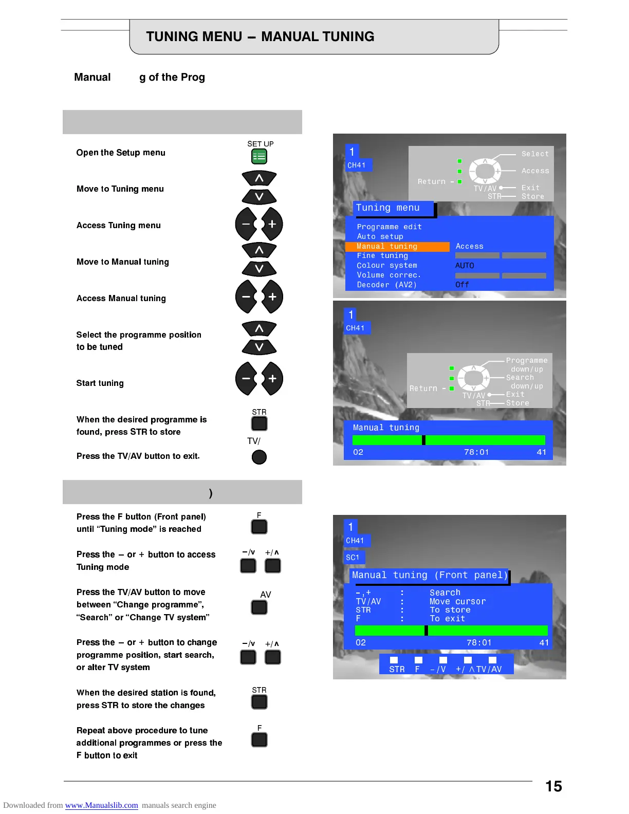 0DQXDO WXQLQJ RI WKH 3URJUDPPH SRVLWLRQV LV DYDLODEOH HLWKHU IURP WKH 2Q 6FUHHQ 'LVSOD\ PHQX