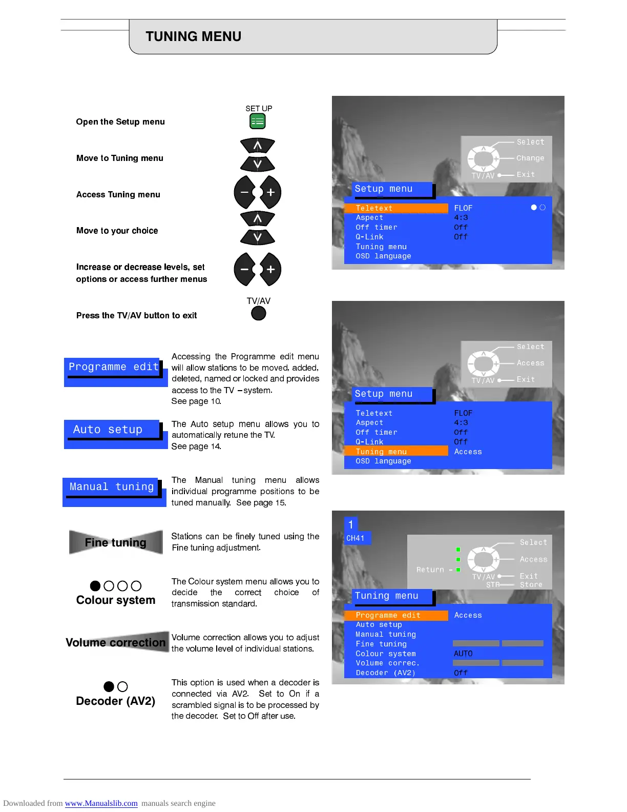 7KH 7XQLQJ PHQX SURYLGHV DFFHVV WR PDQXDO DXWRPDWLF DQG ILQH WXQLQJ PHQXV