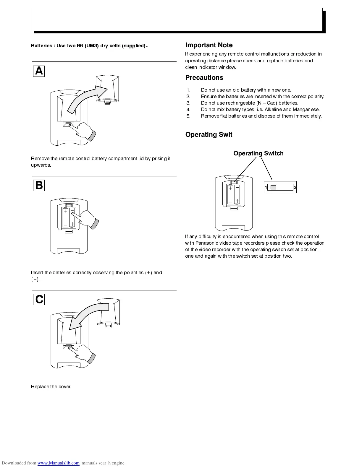 5HPRYH WKH UHPRWH FRQWURO EDWWHU\ FRPSDUWPHQW OLG E\ SULVLQJ LW