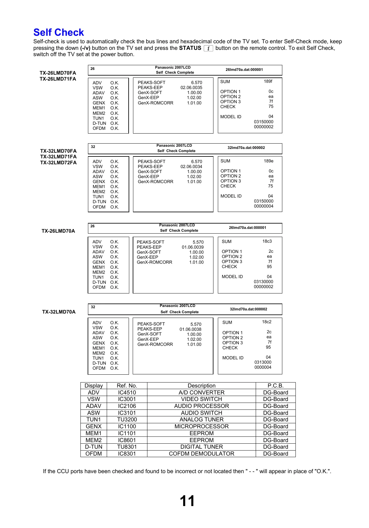 Panasonic TX-26LMD70FA - Self-Check