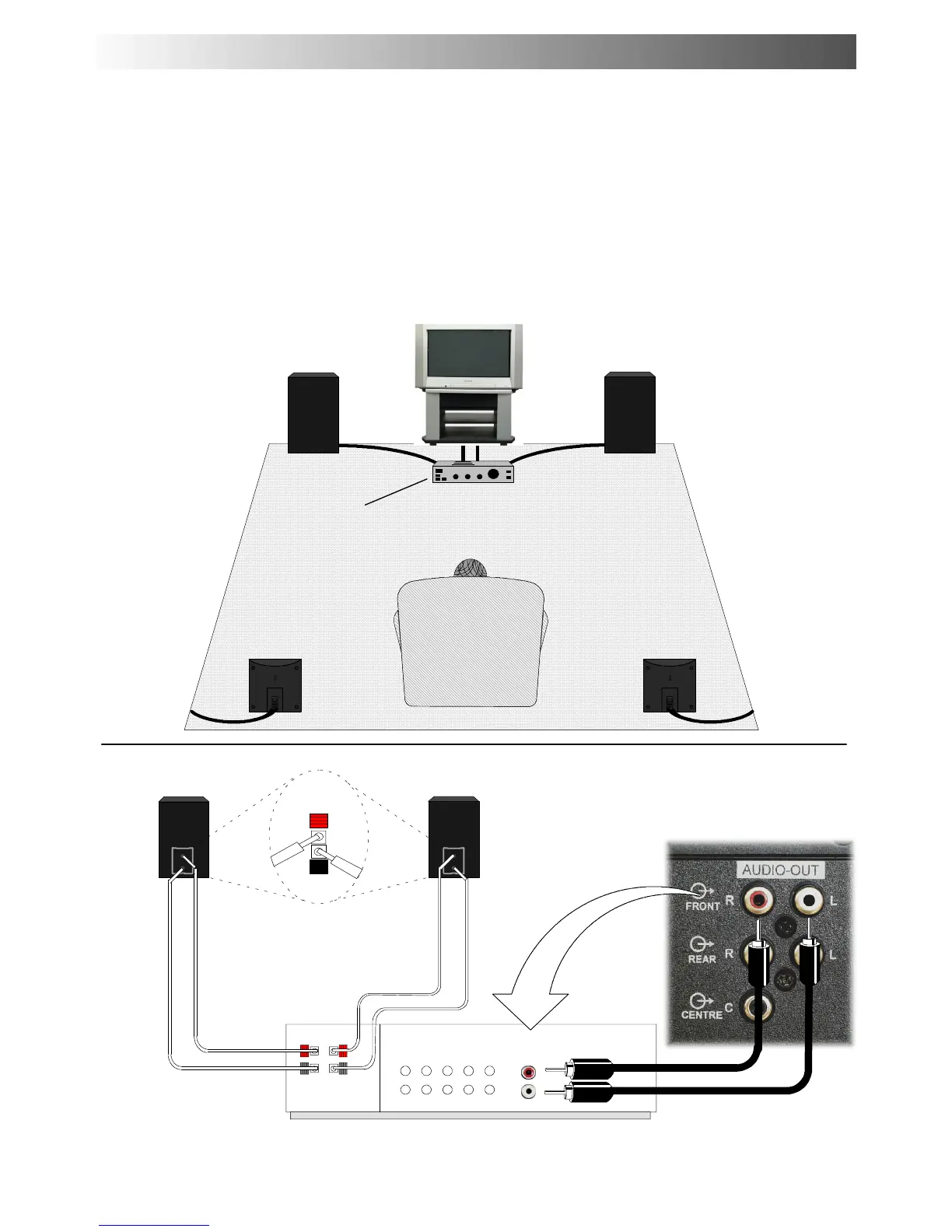 Utilising an existing stereo hi-- fi system comprising one amplifier, connected to the FRONT DOLBY SURROUND