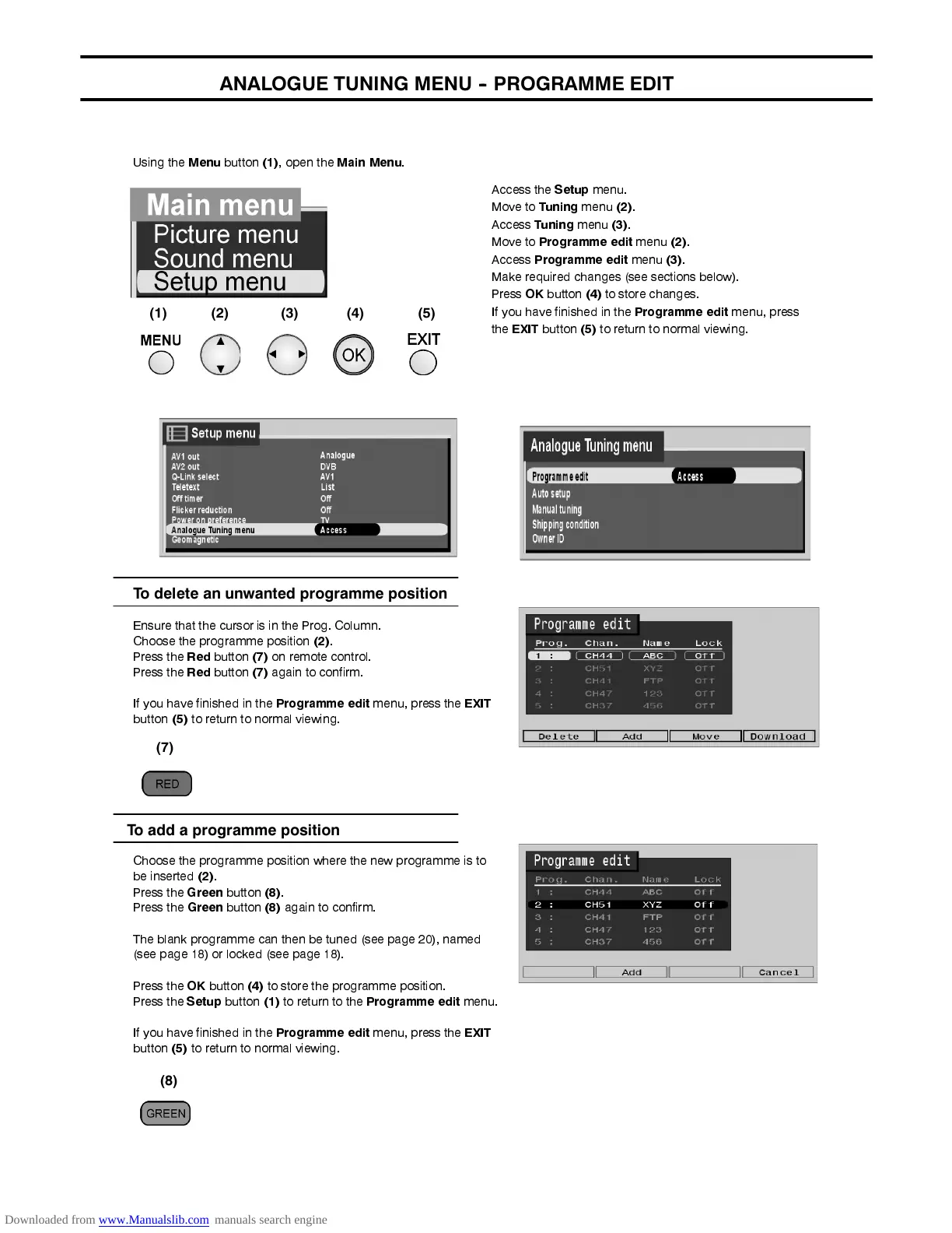 7KH 3URJUDPPH HGLW PHQX DOORZV \RX WR HGLW WKH DQDORJXH SURJUDPPH SRVLWLRQ VHWWLQJV