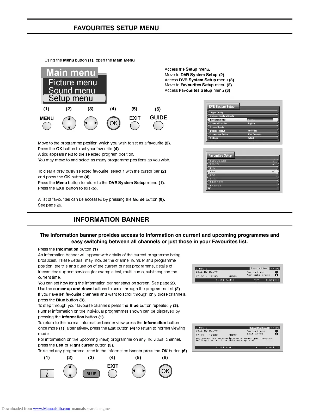 7KH )DYRXULWHV VHWXS PHQX DOORZV \RX WR VHOHFW \RXU IDYRXULWH SURJUDPPH SRVLWLRQV DQG GLVSOD\