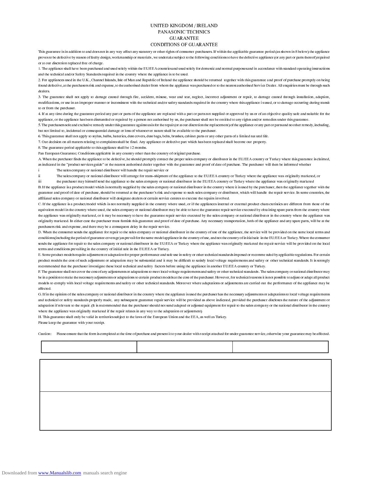 )RU DSSOLD QFHV XVHG LQ WKH 8. &KDQQHO ,VODQGV ,VOH RI 0DQ DQG 5HSXEOLF RI ,UHODQG WKH DSSOLDQFH VKRXOG EH UHWXUQHG WRJHWKHU ZLWK WKLV JXDUD QWHH DQG SURRI RI SXUFKDVH SURPSWO\ RQ EHLQJ