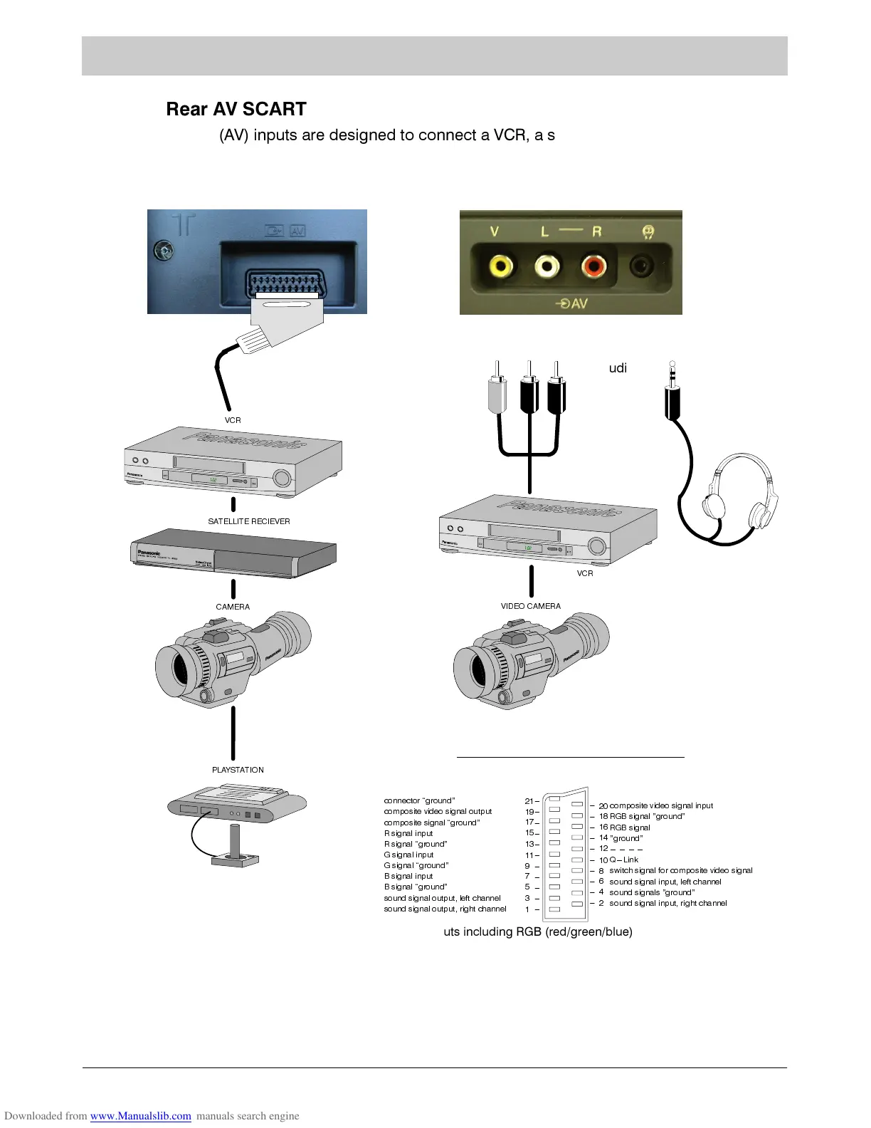 5HDU $9 6&$57 SLQ FRQQHFWRU DQG IURQW 5&$ FRQQHFWRU