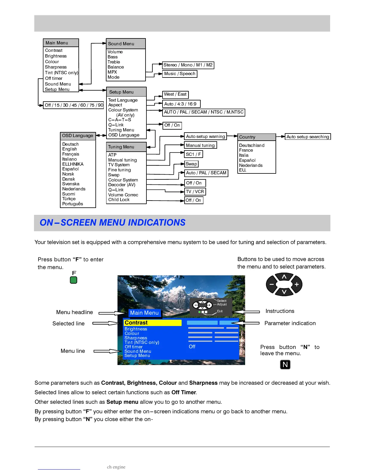 <RXU WHOHYLVLRQ VHW LV HTXLSSHG ZLWK D FRPSUHKHQVLYH PHQX V\VWHP WR EH XVHG IRU WXQLQJ DQG VHOHFWLRQ RI SDUDPHWHUV