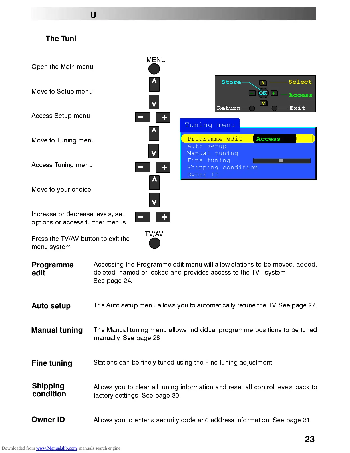 7KH 0DQXDO WXQLQJ PHQX DOORZV LQGLYLGXDO SURJUDPPH SRVLWLRQV WR EH WXQHG