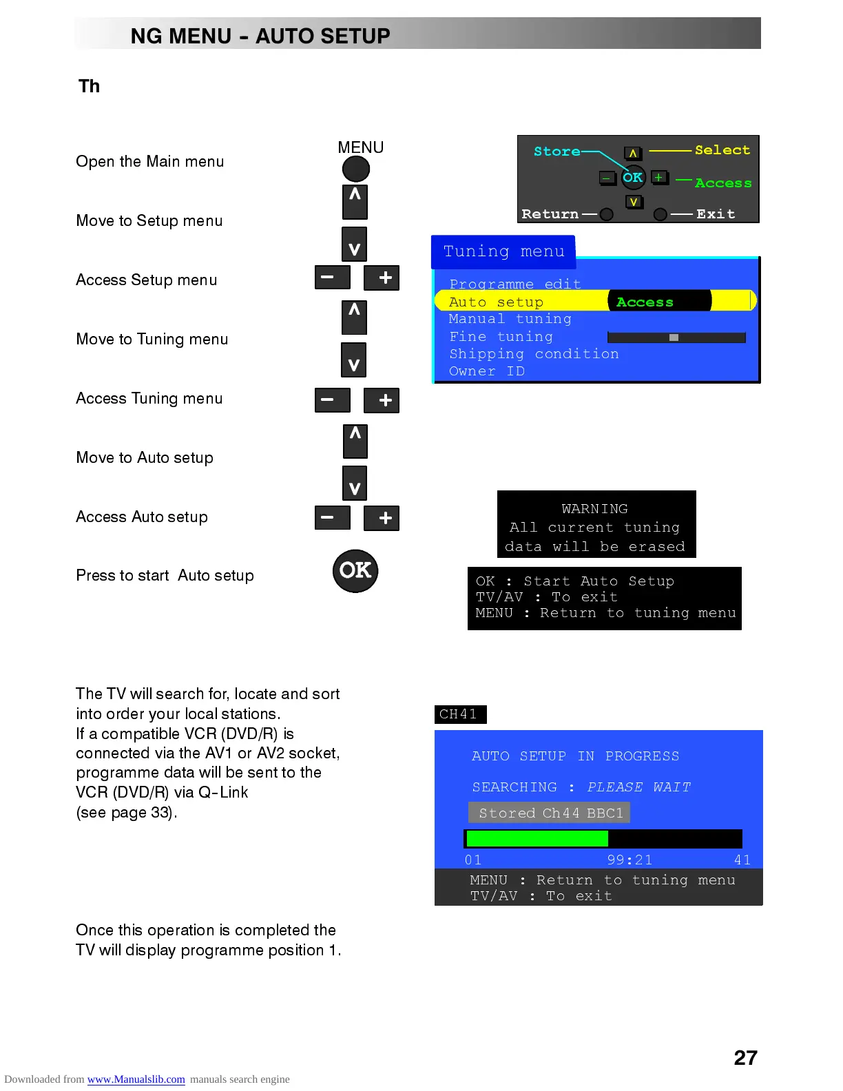 7KH $XWR VHWXS PHQX ZLOO DOORZ \RX WR DXWRPDWLFDOO\ UHWXQH WKH 79 WR \RXU ORFDO
