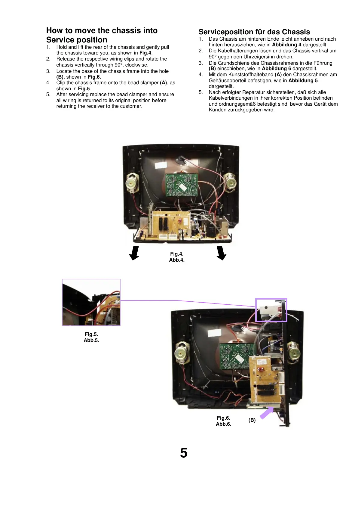 2. Die Kabelhalterungen lösen und das Chassis vertikal um