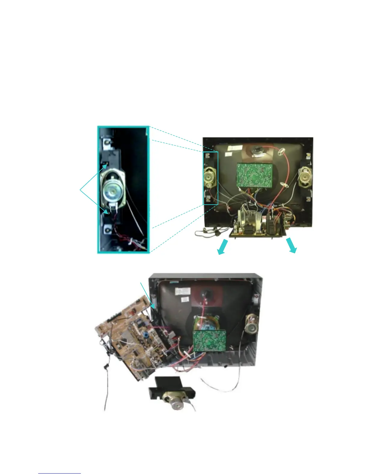 1. Remove 2 screws (A), as shown in Fig.4., and remove speaker assembly.
