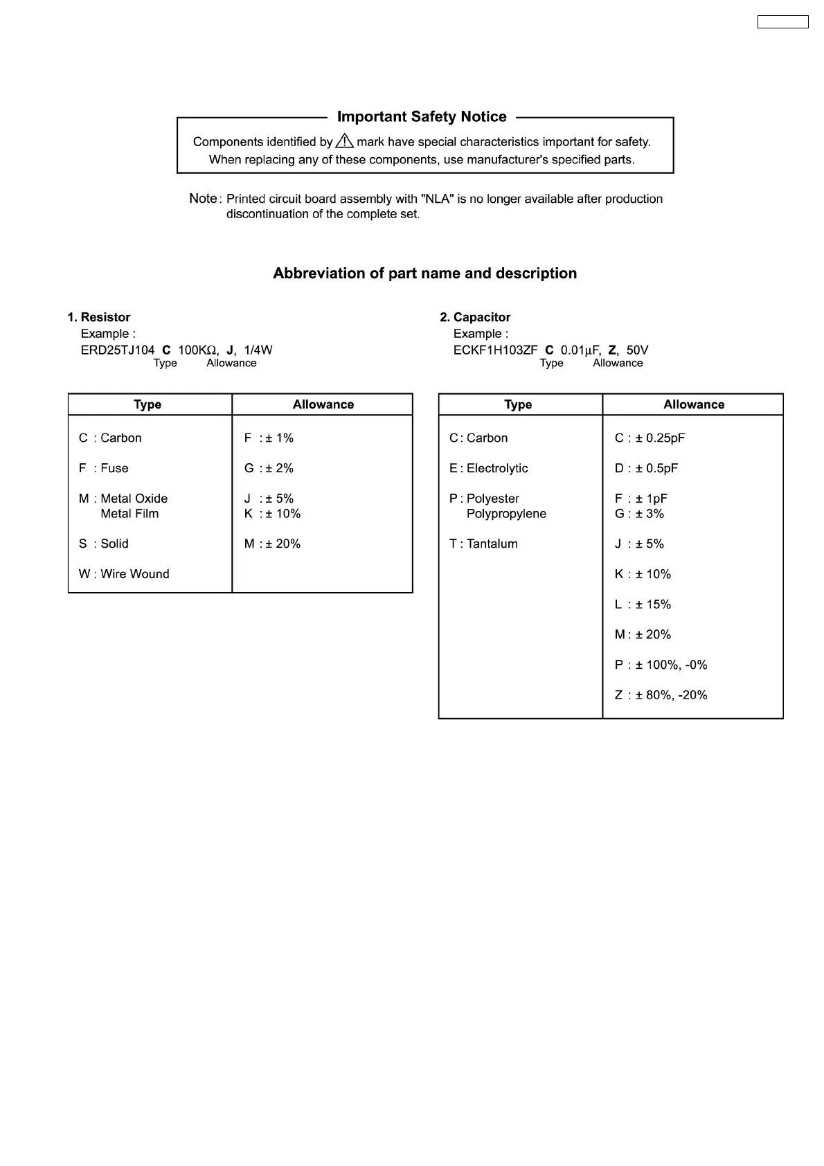 Panasonic TX-29F350T - Replacement Parts List - Abbreviations