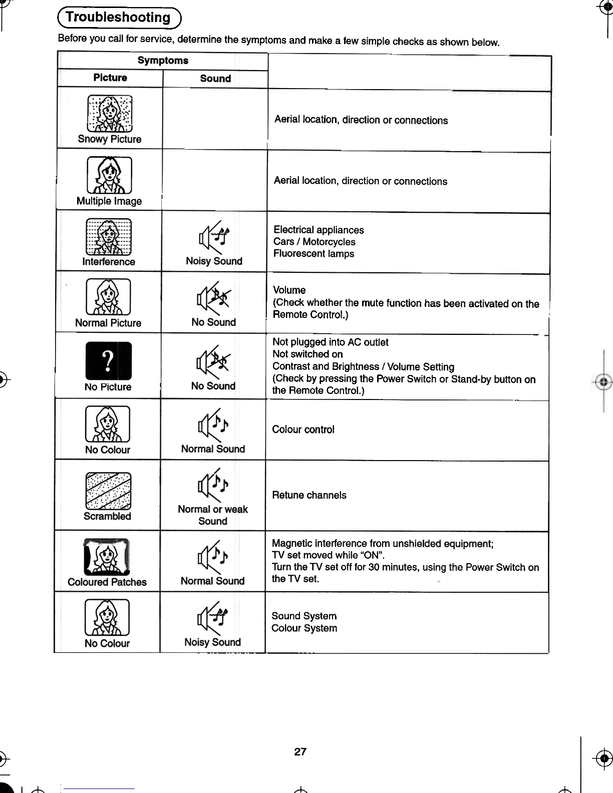 Before you call for service, determine the symptoms and make a few simple checks as shown below.