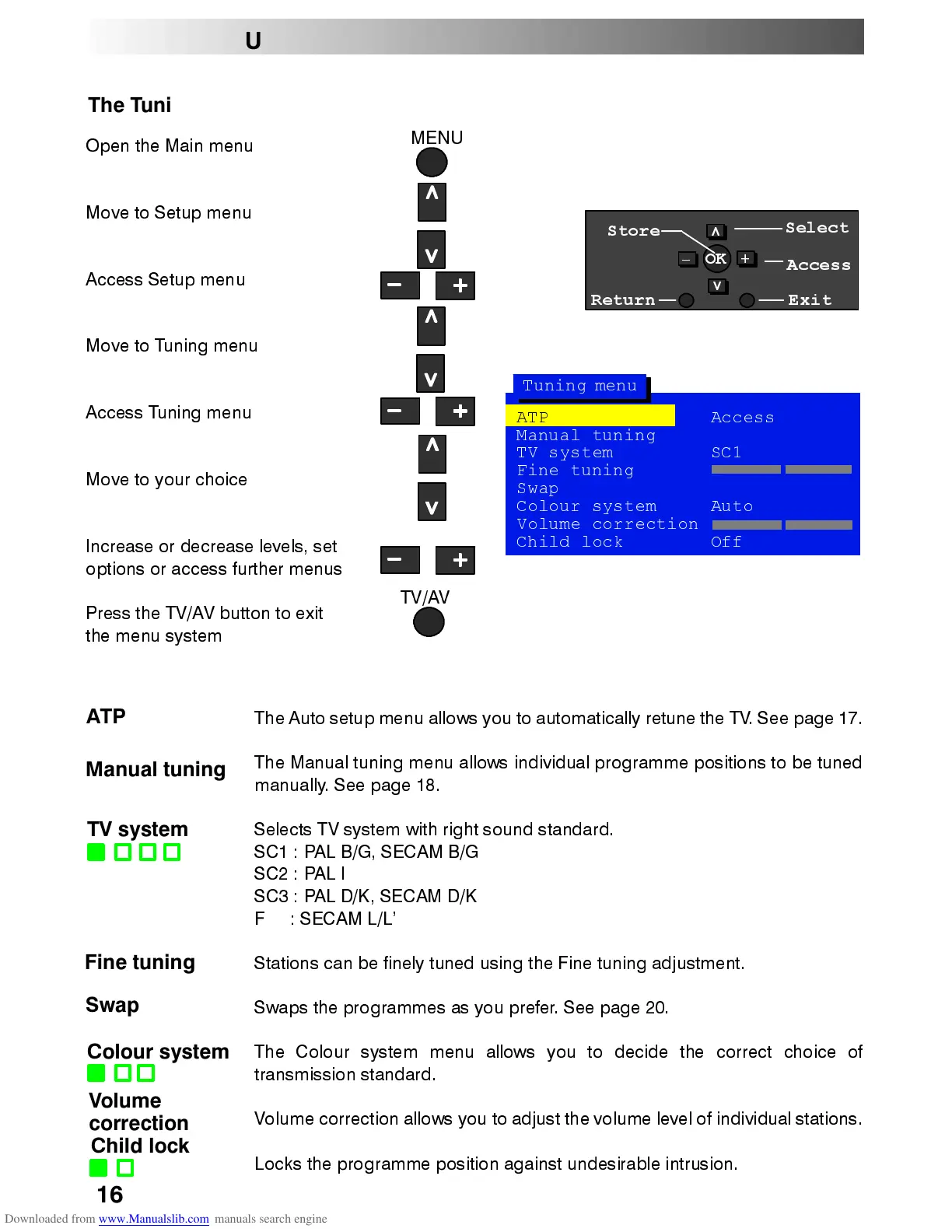 7KH $XWR VHWXS PHQX DOORZV \RX WR DXWRPDWLFDOO\ UHWXQH WKH 79 6HH SDJH
