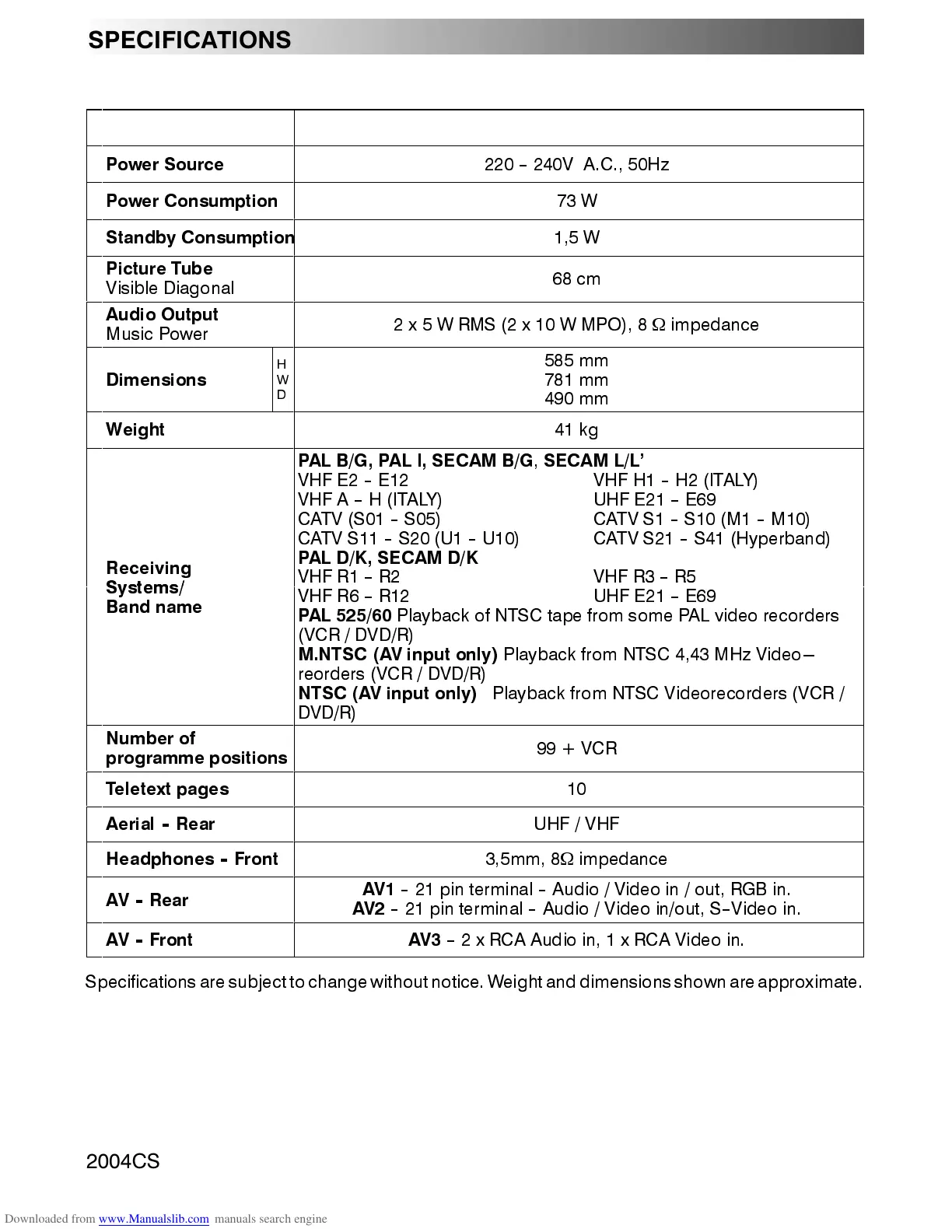 6SHFLILFDWLRQV DUH VXEMHFW WR FKDQJH ZLWKRXW QRWLFH :HLJKW DQG GLPHQVLRQVVKRZQDUH DSSUR[LPDWH