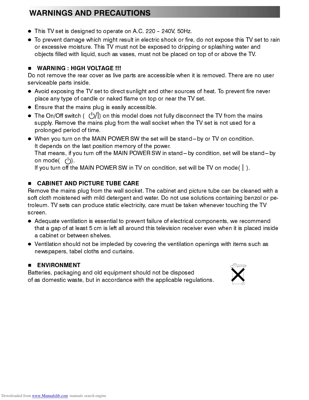 VXSSO\ 5HPRYH WKH PDLQV SOXJ IURP WKH ZDOO VRFNHW ZKHQ WKH 79 VHW LV QRW XVHG IRU D