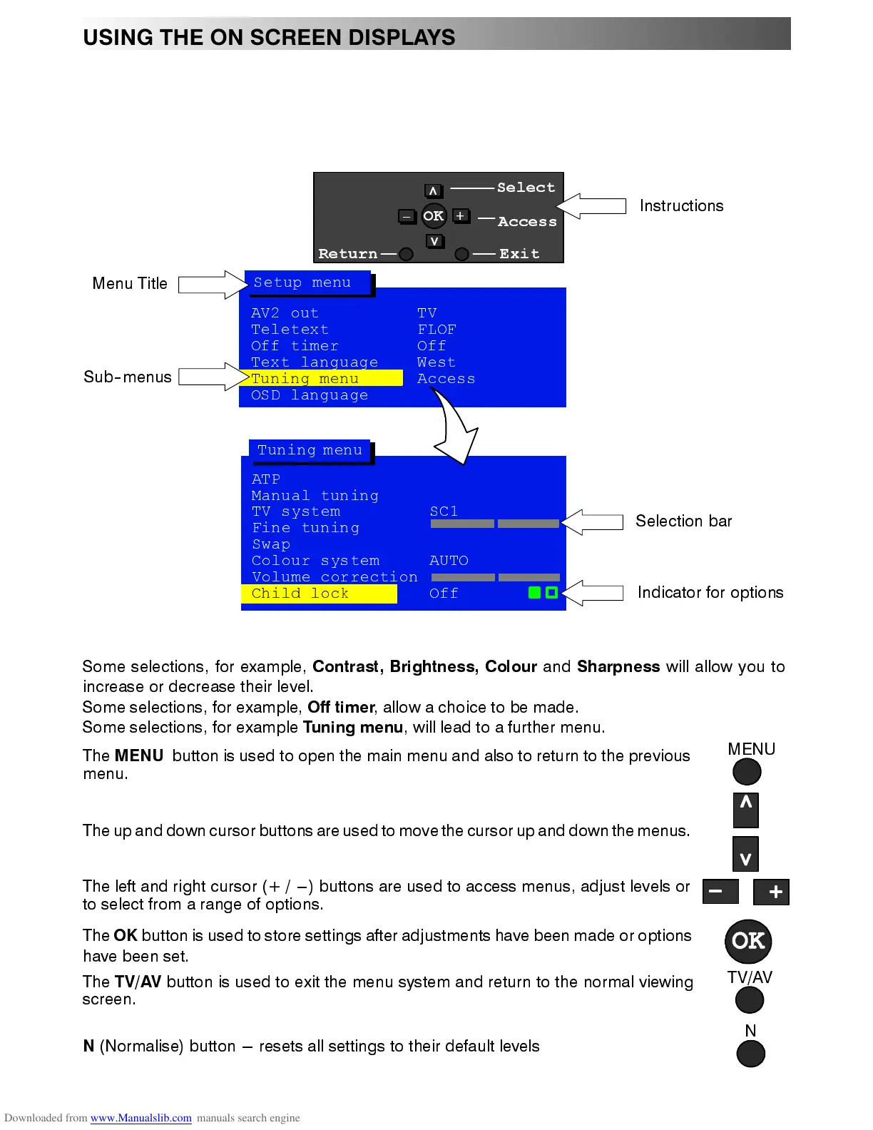 7KLV 79 KDV D FRPSUHKHQVLYH V\VWHP RI 2Q 6FUHHQ 'LVSOD\ PHQXV WR DFFHVV