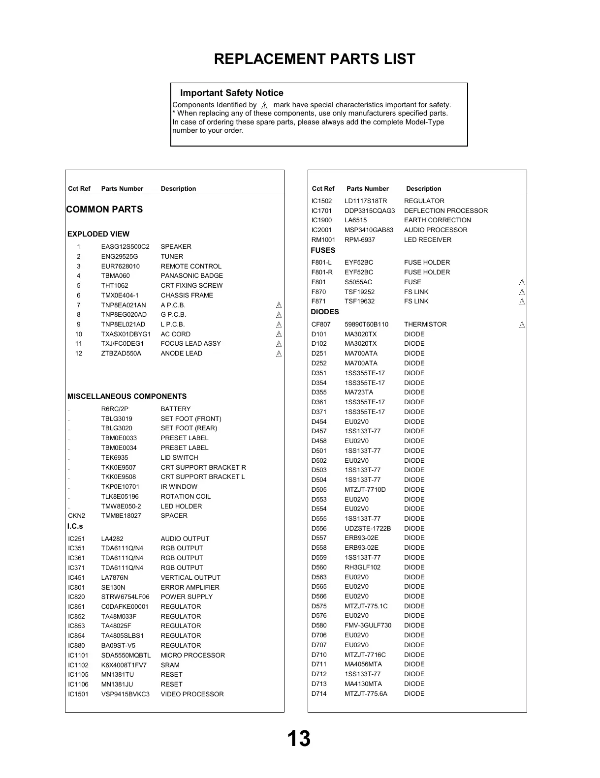 * When replacing any of these components, use only manufacturers specified parts.
