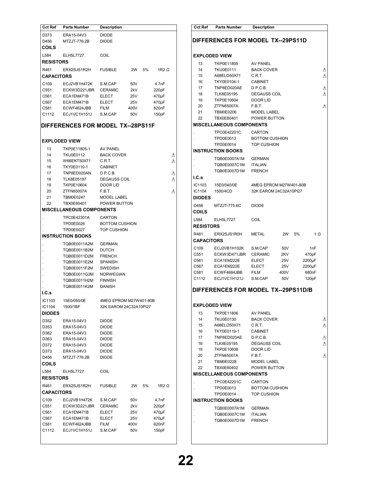 DIFFERENCES FOR MODEL TX--29PS11D/B