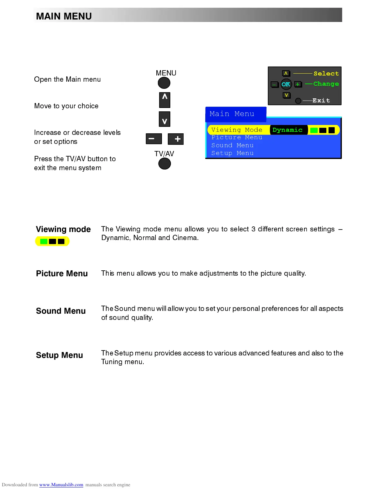 7KLV PHQX DOORZV \RX WR DFFHVV WR 9LHZLQJ 0RGH 3LFWXUH 6RXQG DQG 6HWXS