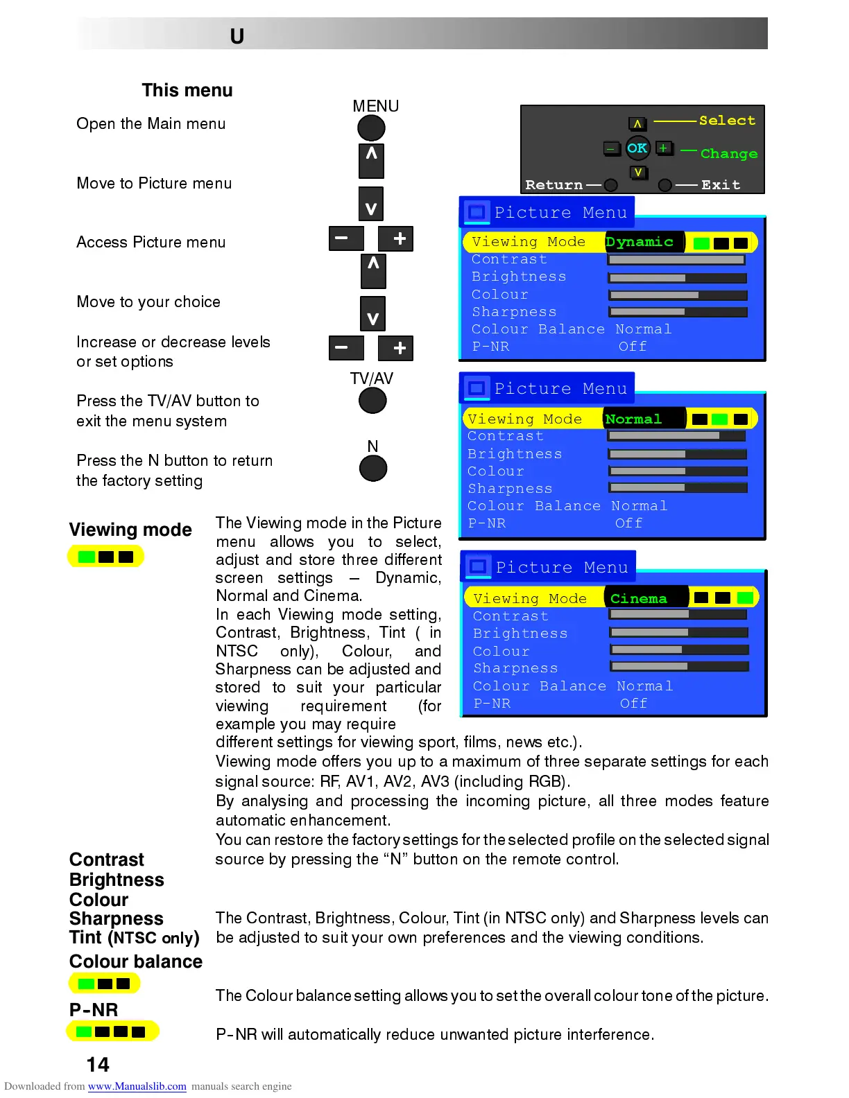 7KLV PHQX DOORZV \RX WR PDNH DGMXVWPHQWV WR WKH SLFWXUH TXDOLW\