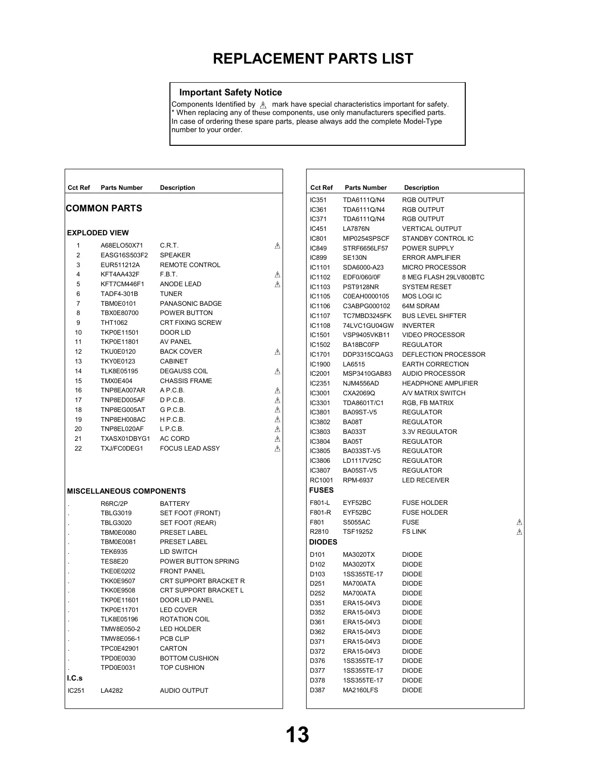 DescriptionCct Ref Parts Number DescriptionCct Ref Parts Number