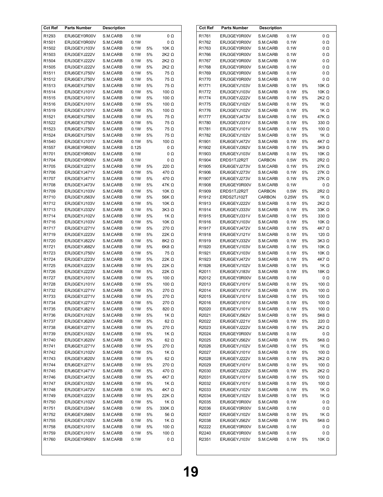 S.M.CARBR1908 ERJ6GEY0R00V 0.1W 0 Ω