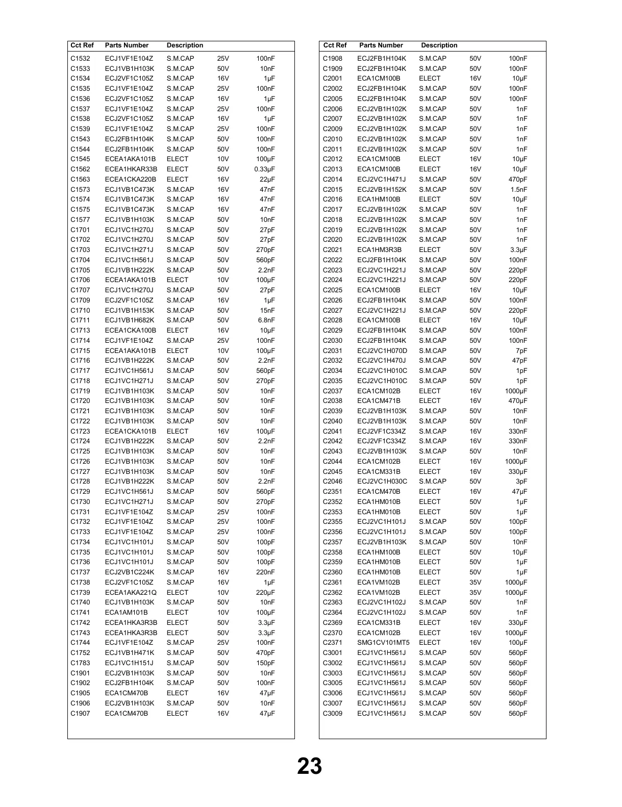 DescriptionCct Ref Parts Number DescriptionCct Ref Parts Number