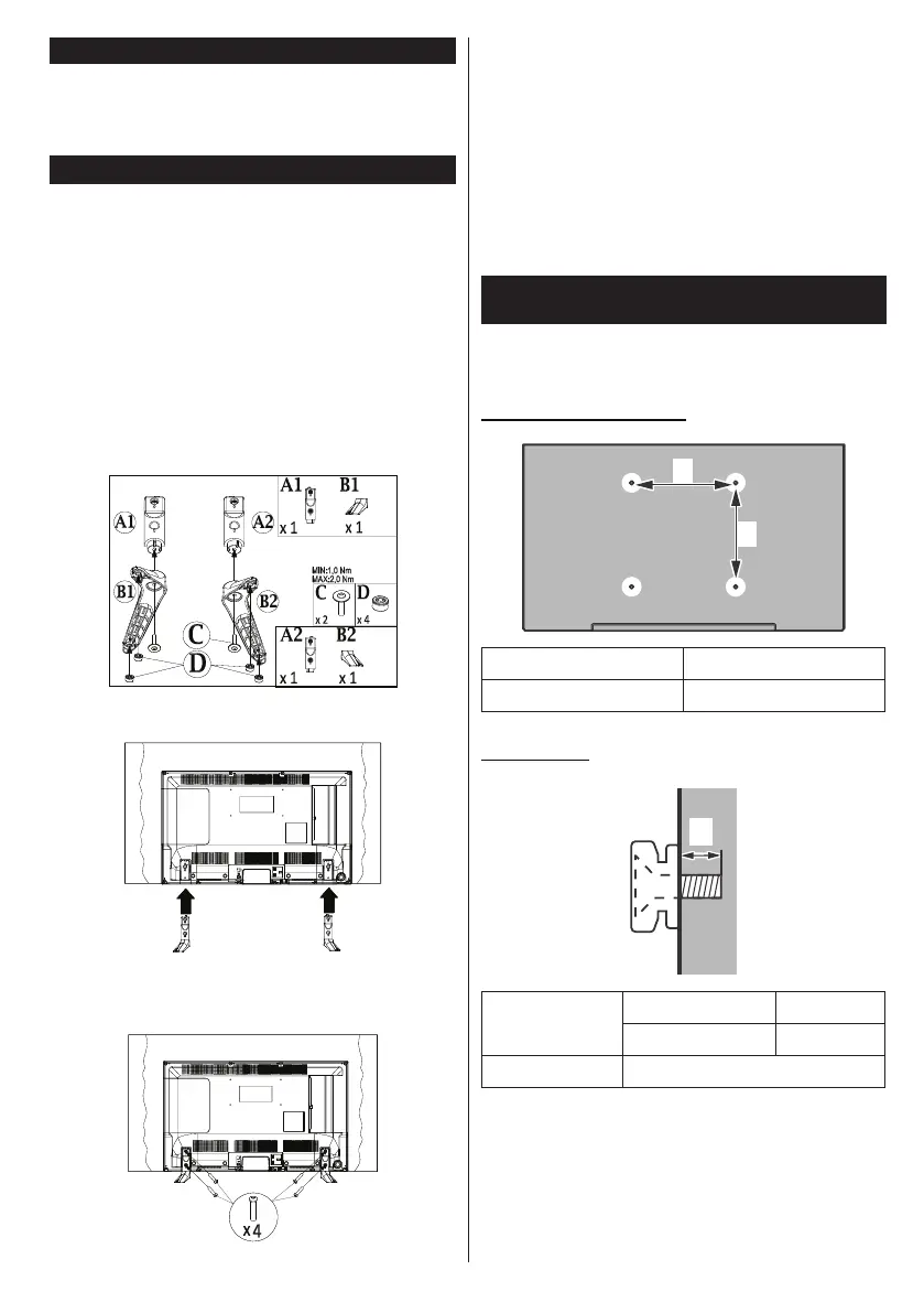 Nota: Le viti per il ssaggio della TV mediante staffa a parete