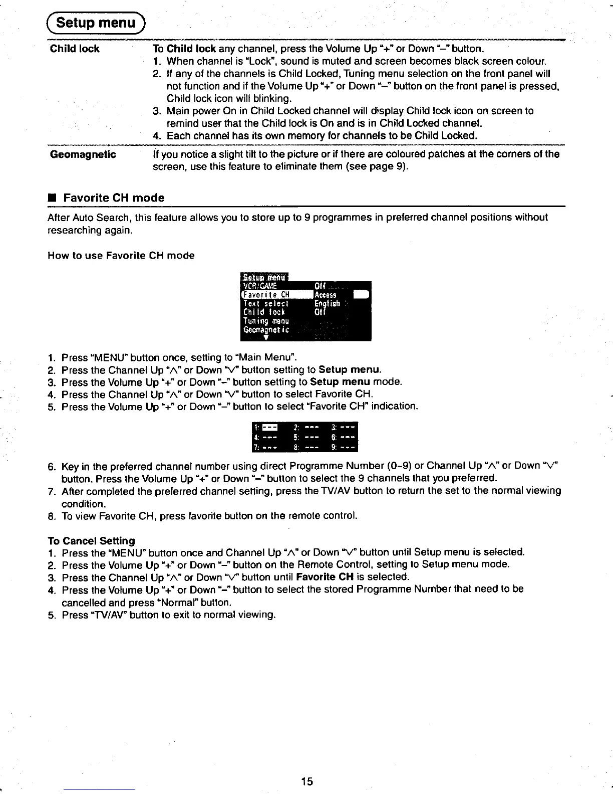 ~ 2. Press the Channel Up" 1\" or Down "V" button setting to Setup menu.