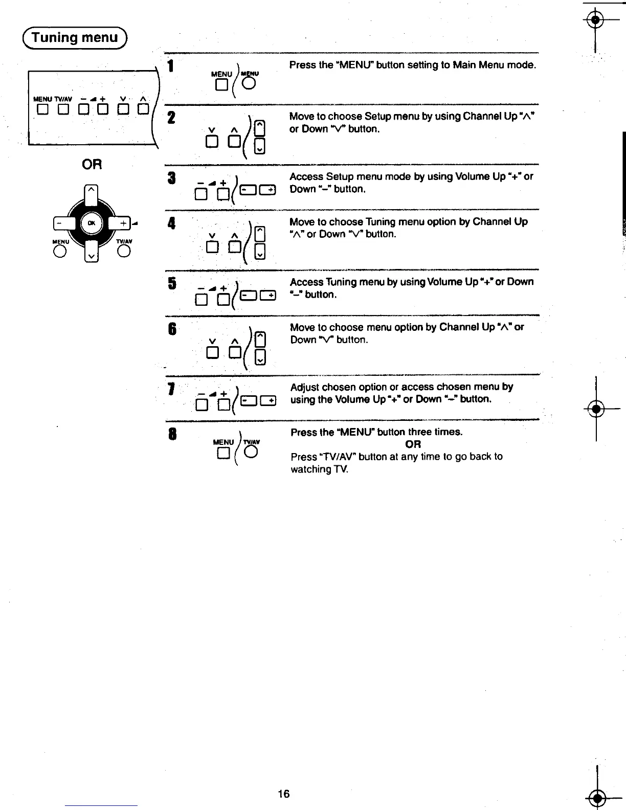 ( Move to choose Tuning menu option by Channel Up