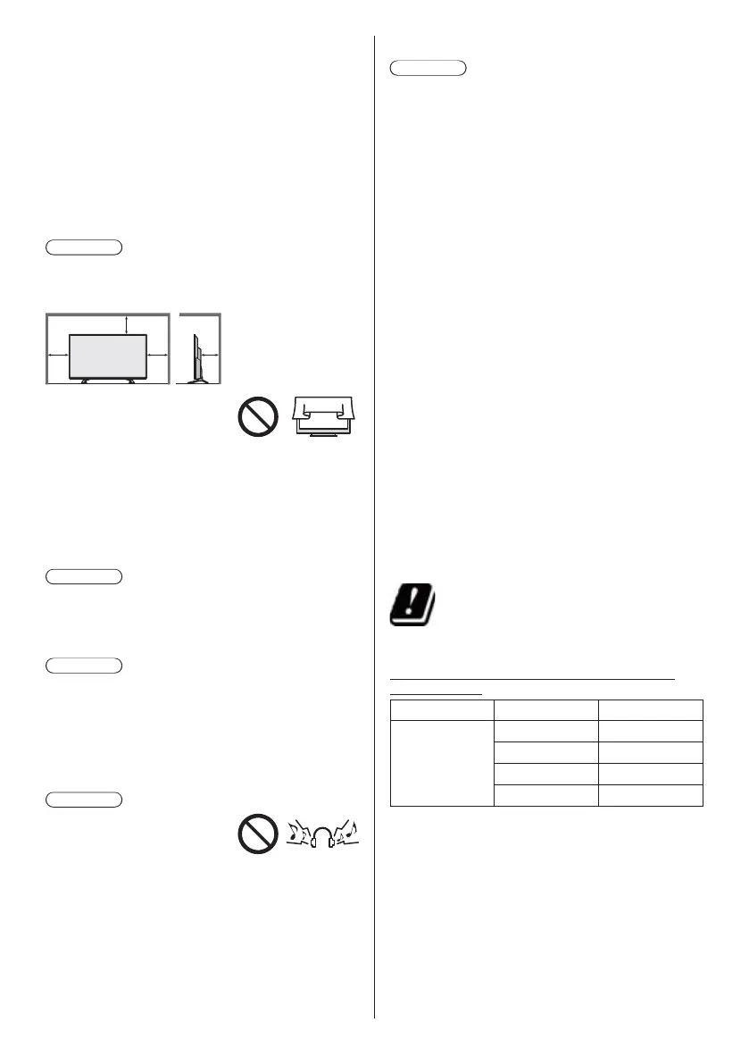 Allow sufficient space (at least 10 cm) around the TV in