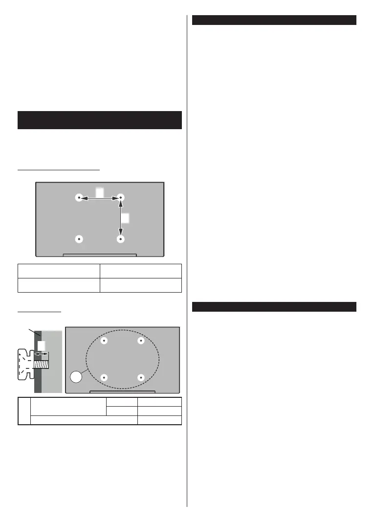 Nota: Le viti per il fissaggio della TV mediante staffa a parete