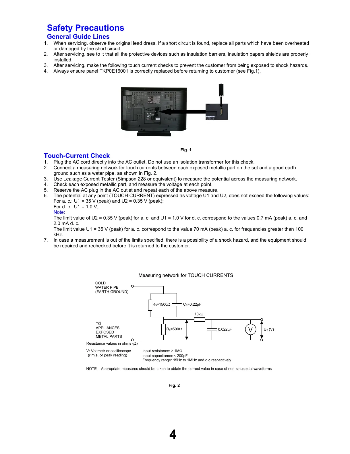 Panasonic TX-32LE8F - Safety Precautions; General Guide Lines; Touch-Current Check